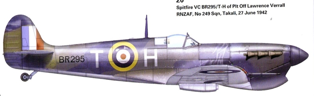 FF 25-4-42 6MU 26-4-42 47MU 4-5-42 'Empire Conrad' 13-5-42 Gibraltar 27-5-42 flown off 'HMS Eagle' to Malta 3-6-42 'C-39' 249Sq 'T-H' 1-7-42 185Sq 15-10-42 Shot down by return fire from Ju88 20ml S of Malta 7-12-42 Sgt DG Guy+ SOC 8-12-42 FH55:55