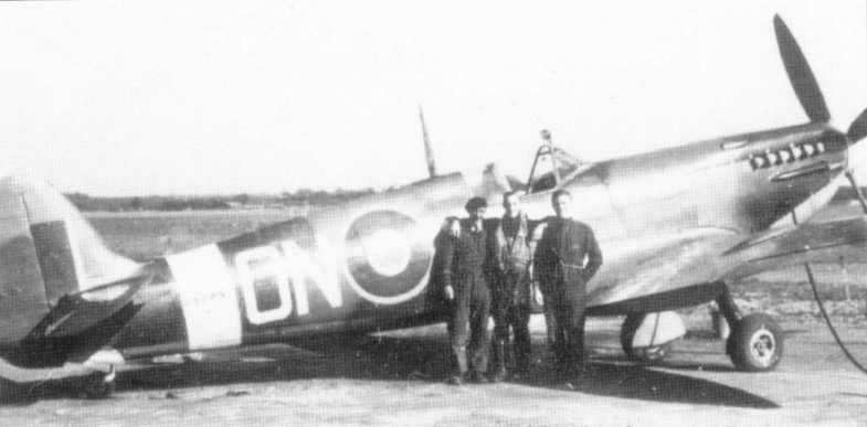 FF 19-12-42 HA Flt Northolt 29-12-42 124Sq 'ON-Y' 25-1-43 Taxied into MB825 West Malling CA 26-11-43 FSgt MJH Blanch (RAAF) safe 1CRU 24-11-44 33MU 25-11-44 SOC 30-11-44 Shoeburyness for trls with live AA ammunition to test explosive decompression of pressure cabin SOC 4-5-48
