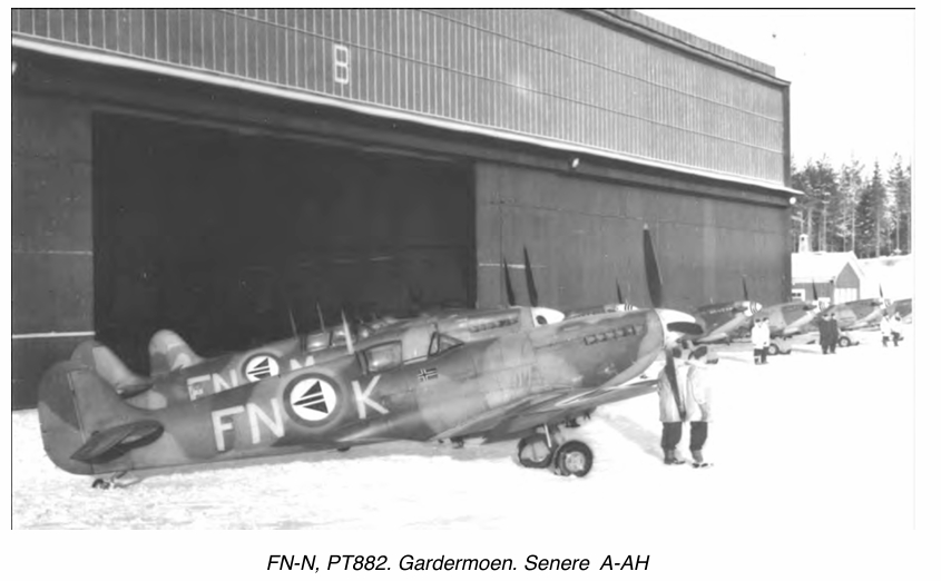 8MU 23-8-44 329Sq CB 12-9-44 421RSU AST 12-10-44 331Sq 'FN-K' 10-5-45 RNoAF 331skv 'A-AH' 'Unni' swung on landing Kjevik 23-9-49 inst af Kjevik 21-2-50
