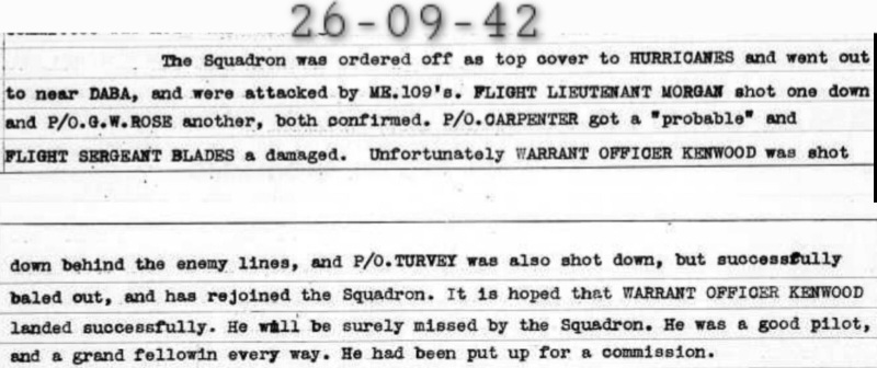 William Frank Kenwood joined 92 Squadron on 28th August 1941 together with fellow RCAF pilots,, P/O Joseph Edmund Tobin Assellin and Sgt William George Pavely. Eddie Assellin became a POW 7 days later as would Frank Kenwood the following year on 26th September 1942