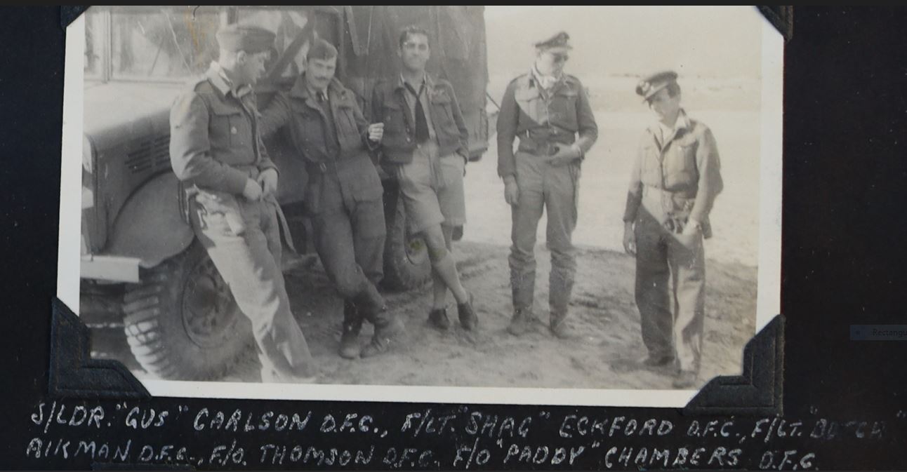 Squadron Leader Donald CARLSON (40207), No. 154 Squadron. This officer has completed a large number of operational sorties. He is a skilful and energetic squadron commander who, by his personal example, has raised the squadron to a high pitch of fighting efficiency. He has destroyed at least 3 enemy aircraft. London Gazette No. 35709, Dated 1942-09-18