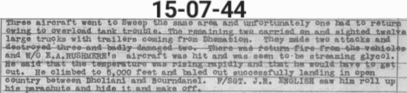 Patrolled Vis with Lt Tennant & returned to Grottaglie 0615 - 0800