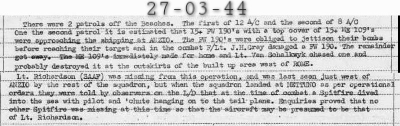 Burial/Commemoration Details : XII. F. 11. at Beach Head War Cemetery, Anzio, Italy.