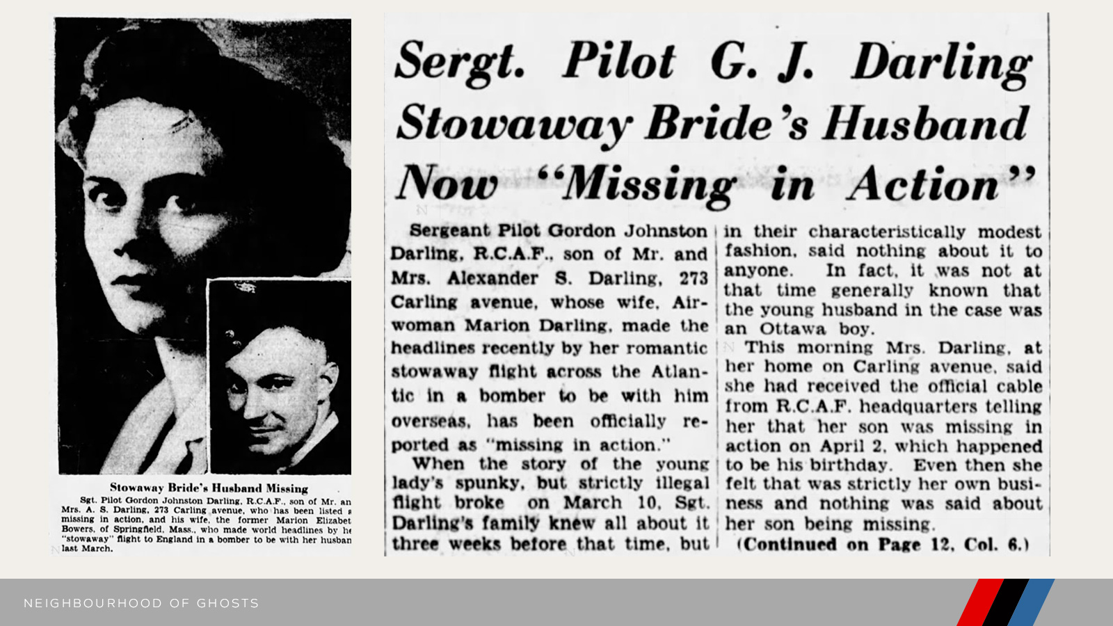 Was husband of the famous Stowaway Bride (Marian Elizabeth Darling) a Women's Division nurse who snuck on board a DC-3 in Gander to get to UK to see her husband she had just married,
